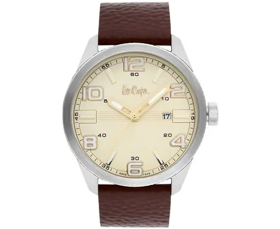 Наручные часы Lee Cooper LC-36G-E Коллекция: Casual. Пол: Мужские. Часовой механизм: Кварцевый. Материал корпуса часов: Нержавеющая сталь. Стекло: Минеральное. Тип браслета/ремня: Ремешок из кожи телёнка. Водозащита: 5 ATM. Циферблат: Бежевый. Функции: часы, минуты, секунды, дата. Размеры корпуса: 47 мм. Гарантия 24 месяца!
