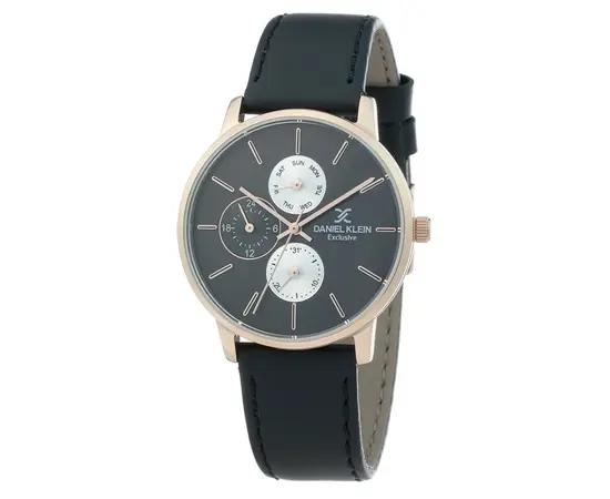 Наручные часы Daniel Klein DK.1.12298-5 Коллекция: Exlusive Collection. Модель: DK.1.12298-5. Пол: Женские. Часовой механизм: Кварцевый. Материал корпуса часов: Латунь с покрытием PVD. Стекло: Минеральное. Тип браслета/ремня: Ремешок из кожи телёнка. Водозащита: 3 ATM. Циферблат: Черный. Функции: часы, минуты, секунды, дата, день недели, время суток. Диаметр корпуса: 36 мм. Гарантия 24 месяца!