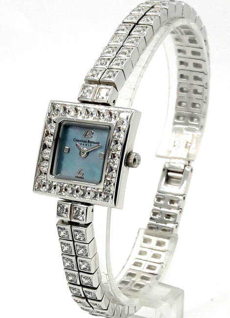 Французские часы Christian Bernard JY744ZWBF Пол: Женские. Часовой механизм: Кварцевый. Материал корпуса часов: Нержавеющая сталь, Цирконы. Стекло: Сапфировое. Тип браслета/ремня: Нержавеющая сталь ,. Цирконы. Водозащита.: 3. ATM. Циферблат: Синий перламутр. Функции: часы, минуты. Размеры корпуса: 18 х 18 мм. Гарантия 24 месяца!