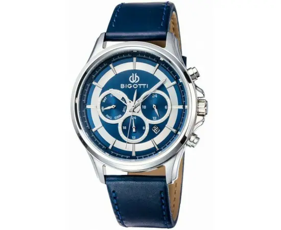 Наручные часы Bigotti BGT0108-4 Коллекция: For Men. Пол: Мужские. Часовой механизм: Кварцевый. Материал корпуса часов: Латунь. Стекло: Минеральное. Тип браслета/ремня: Ремешок из кожи телёнка. Водозащита: 5 ATM. Циферблат: Синий. Функции: часы, минуты, секунды, дата, день недели, индикатор день/ночь, время второго часового пояса. Диаметр корпуса: 45 мм. Гарантия 24 месяца!