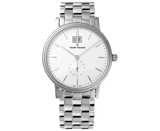 Швейцарские часы Claude Bernard 64011 3 AIN Коллекция: Classic Big Date Small Second. Пол: Мужские. Часовой механизм: Кварцевый. Материал корпуса часов: Нержавеющая сталь. Стекло: Сапфировое. Тип браслета/ремня: Нержавеющая сталь. Водозащита: 5 ATM. Циферблат: Белый. Калибр механизма: Ronda 6004.B. Функции: часы, минуты, малая секундная стрелка, большая дата. Размеры корпуса: диаметр 39 мм, высота 8 мм. Гарантия 24 месяца!