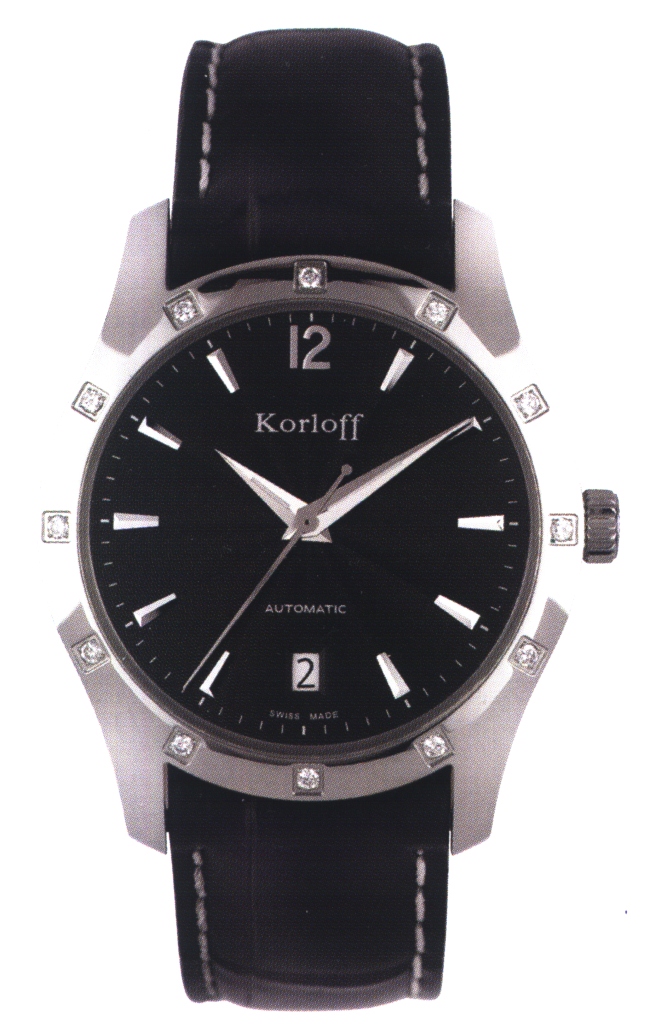 Швейцарские часы Korloff CAK38/299 Марка: Korloff Коллекция: K12 Модель: CAK38/299 Пол: Мужские Женские Часовой механизм: Механический с автоподзаводом Материал корпуса часов: Нержавеющая сталь Стекло: Сапфировое Тип браслета/ремня: Ремешок из кожи теленка Камни: Бриллианты Водозащита: 3 ATM Дополнительные характеристики: Прозрачная задняя крышка Калибр механизма ETA 2892-2. Функции: часы, минуты, секунды, дата. Диаметр корпуса 38 мм. Корпус инкрустирован 12 бриллиантами (0,26 карат). Стрелки с люминисцентным покрытием. Купить часы Korloff возможно на этом сайте.