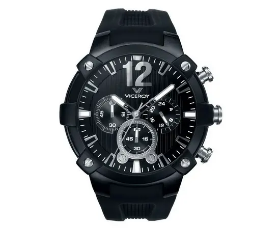 Наручные часы Viceroy 47633-55 Коллекция: Magnum Collection. Пол: Мужские. Часовой механизм: Кварцевый. Материал корпуса часов: Нержавеющая сталь с покрытием PVD Стекло: Минеральное. Тип браслета/ремня: Каучуковый ремешок. Водозащита: 10 ATM. Циферблат: Чёрн ый. Механизм: Miyota. Функции: Часы, минуты, секунды, дата, день недели, хронограф. Диаметр корпуса: 44 мм. Гарантия 24 месяца!