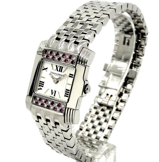 Французские часы Christian Bernard NA143IAGN Пол: Женские. Часовой механизм: Кварцевый. Материал корпуса часов: Нержавеющая сталь, Сапфиры, Бриллианты. Стекло: Сапфировое. Тип браслета/ремня: Нержавеющая сталь. Водозащита.: 3. ATM. Циферблат: Серебристый. Функции: часы, минуты. Размеры корпуса: 23 х 28 мм. Гарантия 24 месяца!