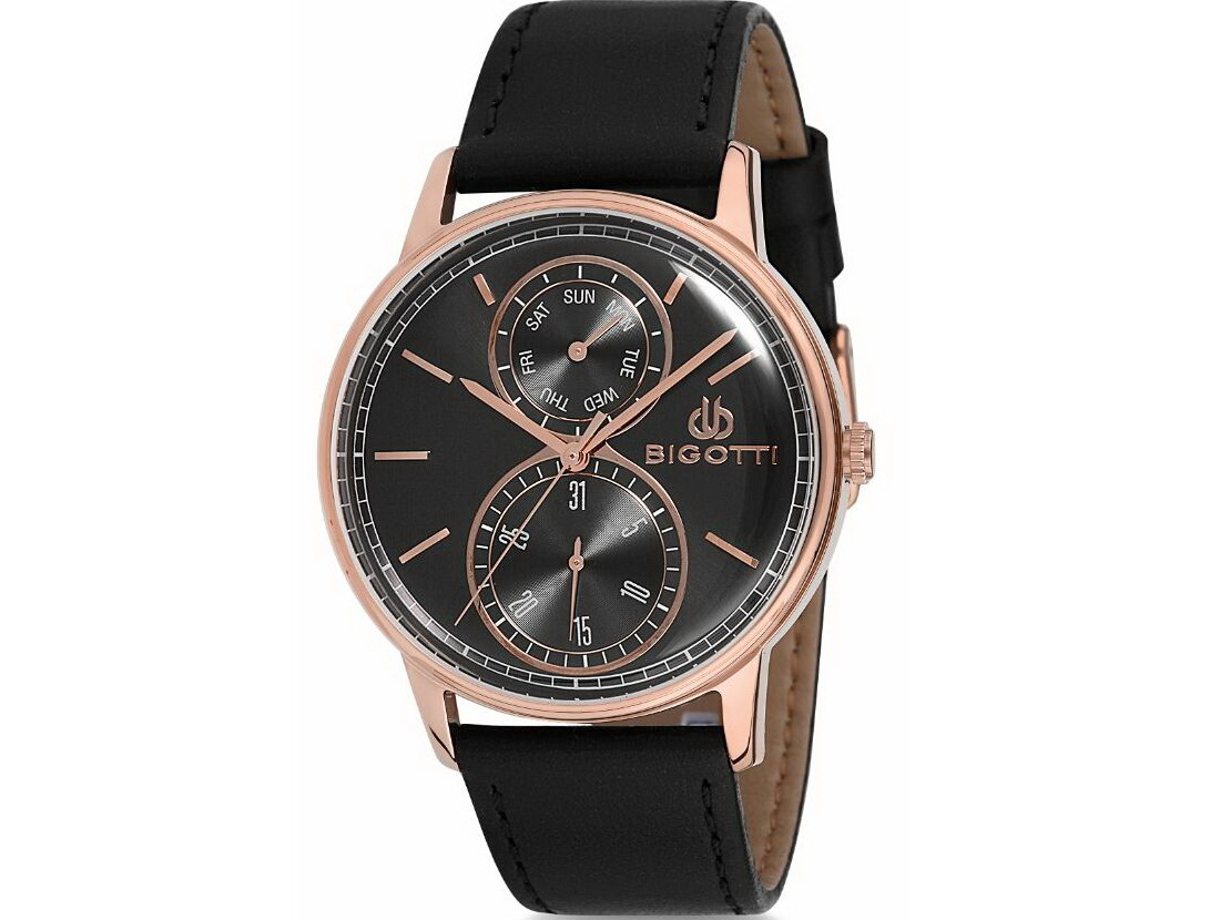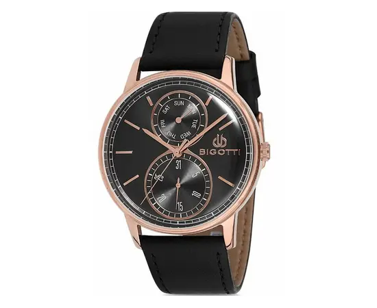 Наручные часы Bigotti BGT0198-4. Коллекция: For Men. Модель: BGT0198-4. Пол: Мужские. Часовой механизм: Кварцевый. Материал корпуса часов: Латунь с покрытием PVD. Стекло: Минеральное. Тип браслета/ремня: Ремешок из кожи теленка. Водозащита: 3 ATM. Циферблат: Чёрный. Функции: часы, минуты, секунды, дата, день недели. Диаметр корпуса: 42 мм. Гарантия 24 месяца!