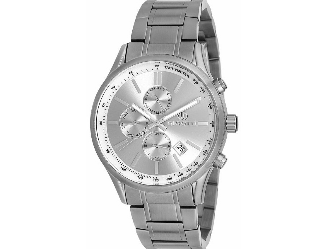 Наручные часы Bigotti BGT0209-5. Коллекция: For Men. Модель: BGT0209-5. Пол: Мужские. Часовой механизм: Кварцевый. Материал корпуса часов: Латунь. Стекло: Минеральное. Тип браслета/ремня: Нержавеющая сталь. Водозащита: 5 ATM. Циферблат: Серый. Функции: часы, минуты, секунды, дата, день недели, время суток, второй часовой пояс, тахиметр. Диаметр корпуса: 44 мм. Гарантия 24 месяца!