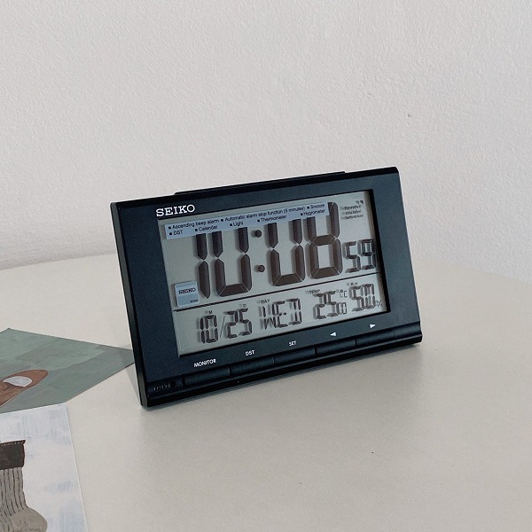 Будильник Seiko QHL090K Коллекция: Digital Clock. Модель: QHL090K. Часовой механизм: Кварцевый. Материал корпуса часов: Пластик. Цвет. корпуса часов: Чёрный. Стекло: Пластиковое. Циферблат: Серый жидкокристаллический дисплей. Функции: часы, минуты, секунды, автоматический календарь включая зимнее/летнее время, будильник с автоматической остановкой и повтором, термометр, гигрометр, подсветка. Размер: 14.8 x 9.3 x 3.8 см. Батарейки в комплекте. Гарантия 24 месяца!