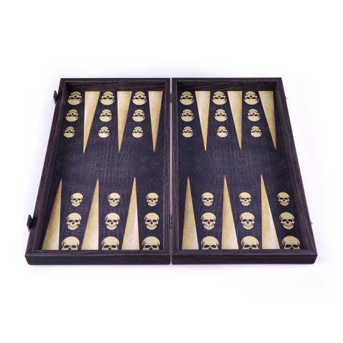 Нарды ручной работы TXL1SKL Manopoulos Handmade Wooden Backgammon printed-Skull Design 48x26cm. Размер доски в закрытом виде: 480 x 260 мм. Вес: 2.2 кг. Комплектация: 30 мраморированных (15 чёрных и 15 белых). пластиковых шашек , 4 игровых кубика, 1 удваивающий кубик, 1 комплект пластиковых кубков для игры в кости. Игровое поле: Дерево с пластиковым покрытием и лакированное покрытие. Внешняя отделка: Дерево с пластиковым покрытием и лакированное покрытие. Каркас: ламинированное дерево. Упаковка: подарочная коробка Manopoulos. Нарды Skull Design совсем не жуткие, и использование всего двух цветов позволяет сделать дизайн более изысканным. Многие элементы дизайна вдохновлены традициями и фольклором, такими как черепа и дьяволы. Все начинается с идеи, которая превращается в интересные и уникальные нарды, выходящие за рамки общепринятых ограничений.
