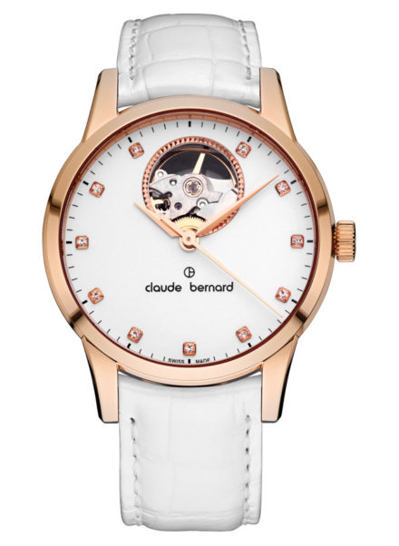 Швейцарские часы Claude Bernard 85017 37R APR. Коллекция:Classic Automatic Open Heart. Пол:Женские. Часовой механизм:Механика с автоподзаводом Материал корпуса часов:Нержавеющая сталь с покрытием PVD Стекло: Сапфировое Тип браслета/ремня:Ремешок из кожи теленка Водозащита:5 ATM. Циферблат: Серебрист ый. Дополнительные характеристики: Циферблат украшен кристаллами Swarovski, прозрачная задняя крышка, открытый баланс хода часов Калибр механизма:ETA 2824 Функции:часы, минуты, секунды. Размеры корпуса: диаметр 40.5 мм , толщина 10 мм. Гарантия 24 месяца!